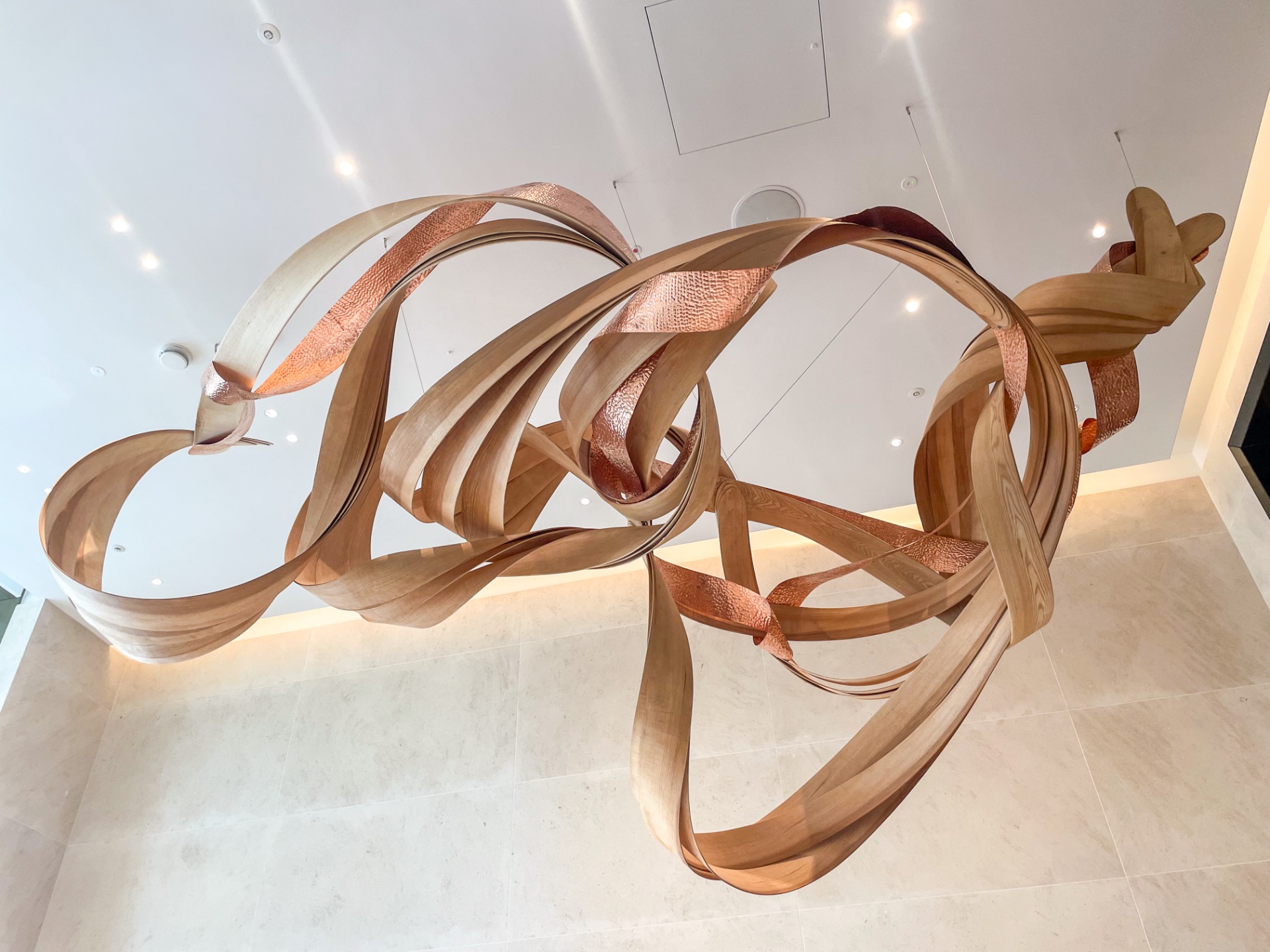'Ask a Tree' is a new collection of sculptures from Charlie Whinney that puts the forest first. There is no client in mind and few critical requirements - its pure sculpture, just the forest, the tree and the artist. The work you see is the product of innumerable conversations that occurred in the woods and the workshop between a tree and Charlie, who listens carefully. All this work is for sale, displayed during the month of May under one of Charlie's recent commissions, the giant 'Ebb & Flow' sculpture in the beautiful new Park Hyatt London River Thames. Sales will allow for exploration and further research into regenability and regenerative design as well as nurturing more of the forests we love.